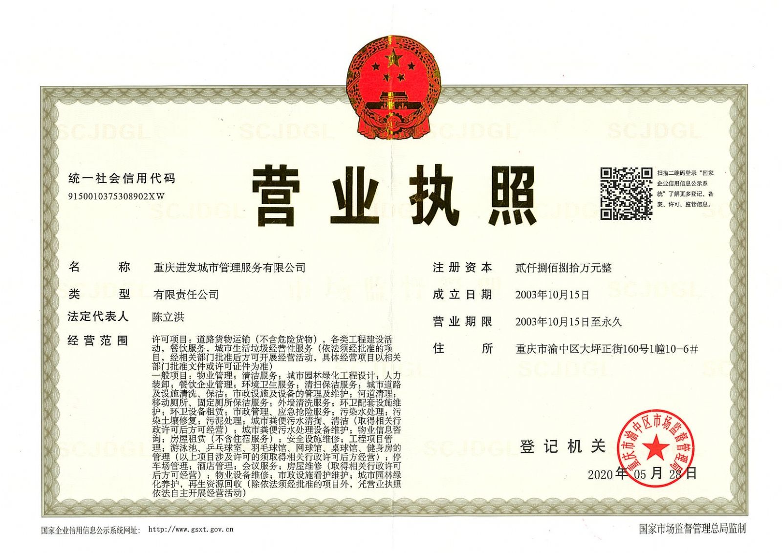 ? ? 重慶進(jìn)發(fā)城市管理服務(wù)有限公司(原名重慶進(jìn)發(fā)物業(yè)管理有限公司),成立于2003年10月,注冊(cè)資金2880萬(wàn)元,位于重慶市渝中區(qū)大坪正街160號(hào)10-6,主要從事住宅、商住樓、寫(xiě)字樓、商業(yè)、政府辦公樓、學(xué)校等各類型大樓的物業(yè)管理服務(wù)以及城市道路環(huán)境衛(wèi)生管理服務(wù)。